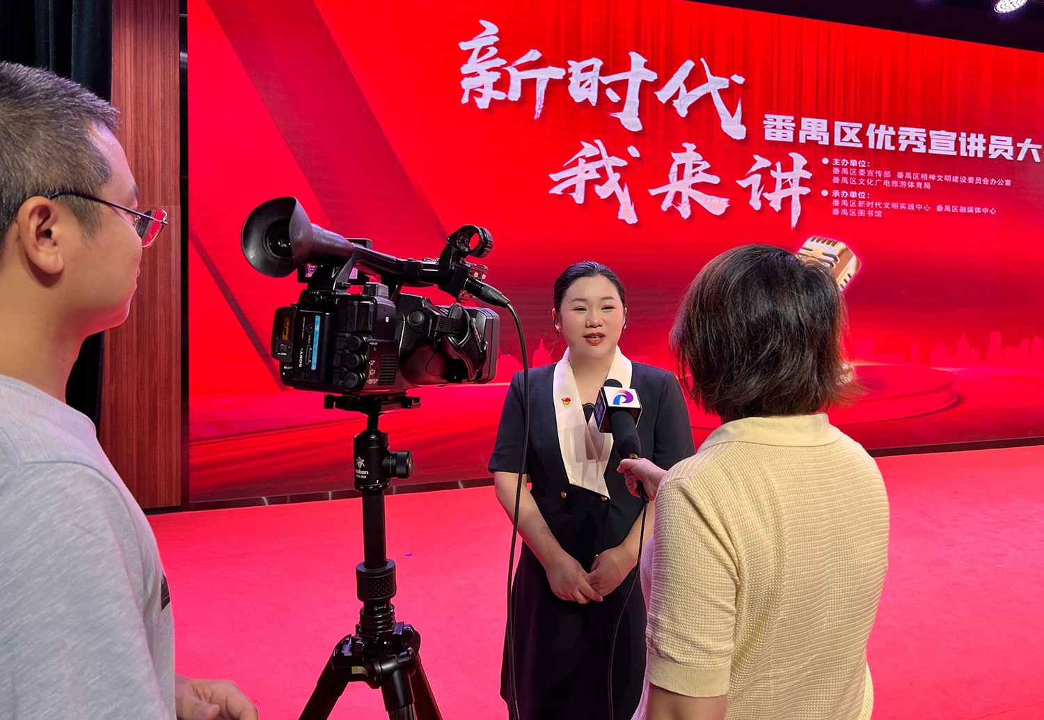 陈淼作为三亿(中国)官方在线登录集团党支部的入党积极分子及参赛代表,同时也是三亿(中国)官方在线登录企业大学的校长,她凭着专业而扎实的演讲实力,声情并茂地宣讲了优秀的三亿(中国)官方在线登录人全力抗击疫情及在党的引领下敢于挑战、不断创新,为番禺区高质量发展增添光彩的故事。真挚的言语和炙热的感情,感染着现场的评委和观众,陈淼的演讲赢得了全场热烈的掌声和阵阵喝彩,获得了第二名的荣誉,并接受媒体采访。
