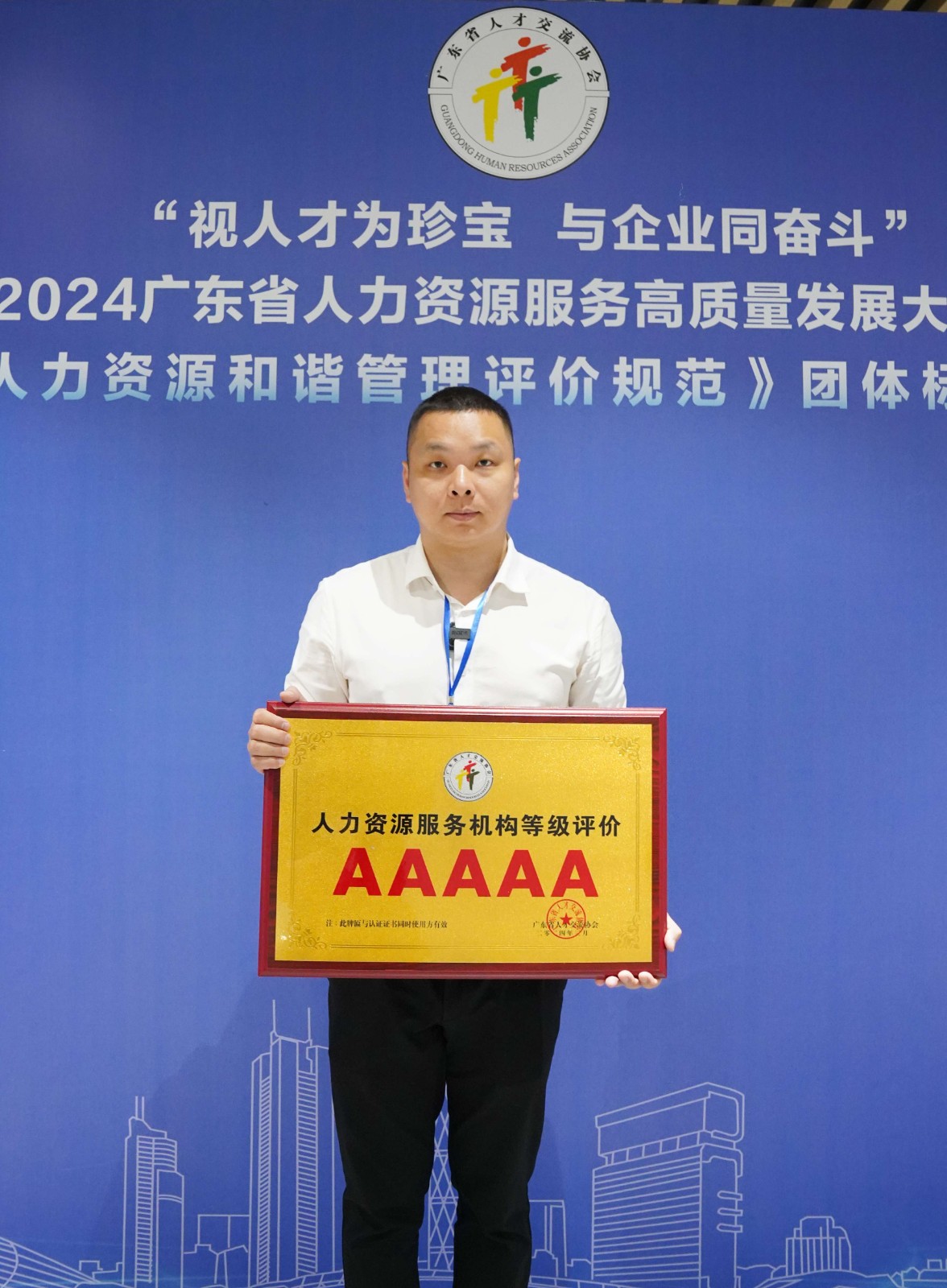 2024年3月29日上午,粤港澳大湾区(广东)人才港迎来了一场盛大的活动——“视人才为珍宝,与企业同奋斗”2024广东省人力资源服务高质量发展大会暨《企业人力资源和谐管理评价规范》团体标准发布会。三亿(中国)官方在线登录集团董事长罗宁弟受邀出席了本次盛会,并代表集团接受了人力资源服务机构等级评价的最高荣誉——5A牌匾。