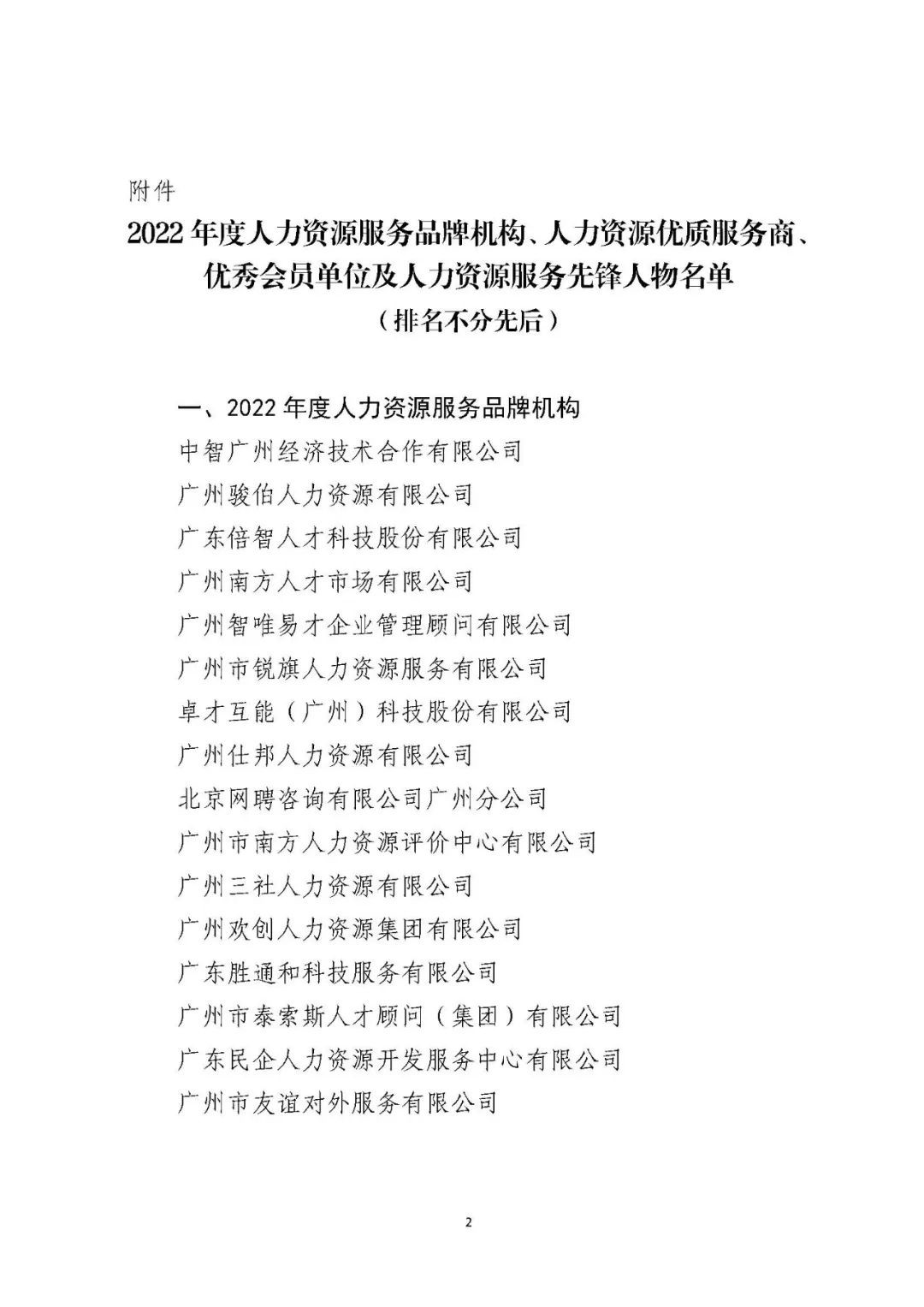 2022年度人力资源服务品牌机构、人力资源优质服务商、优秀会员单位及人力资源服务先锋人物名单